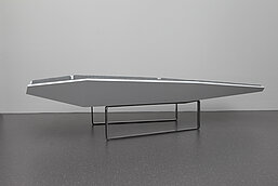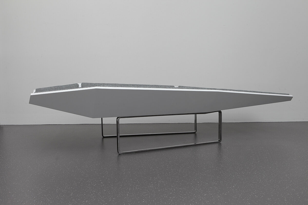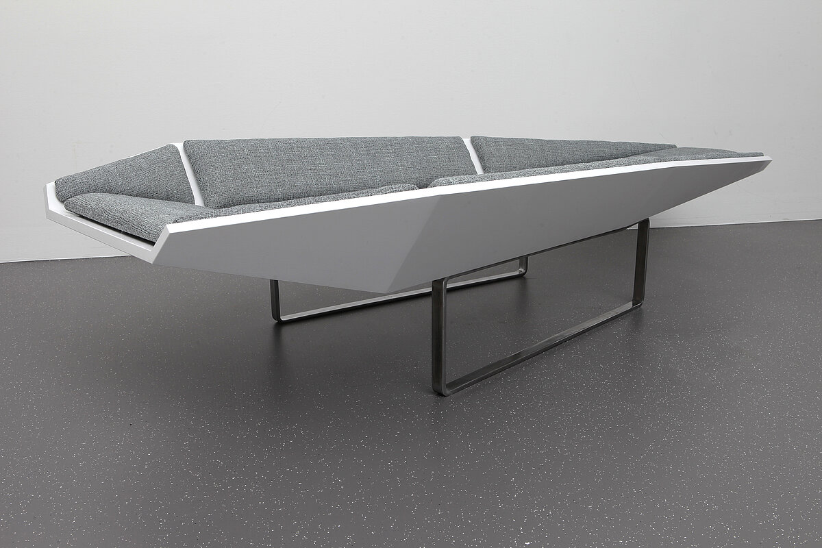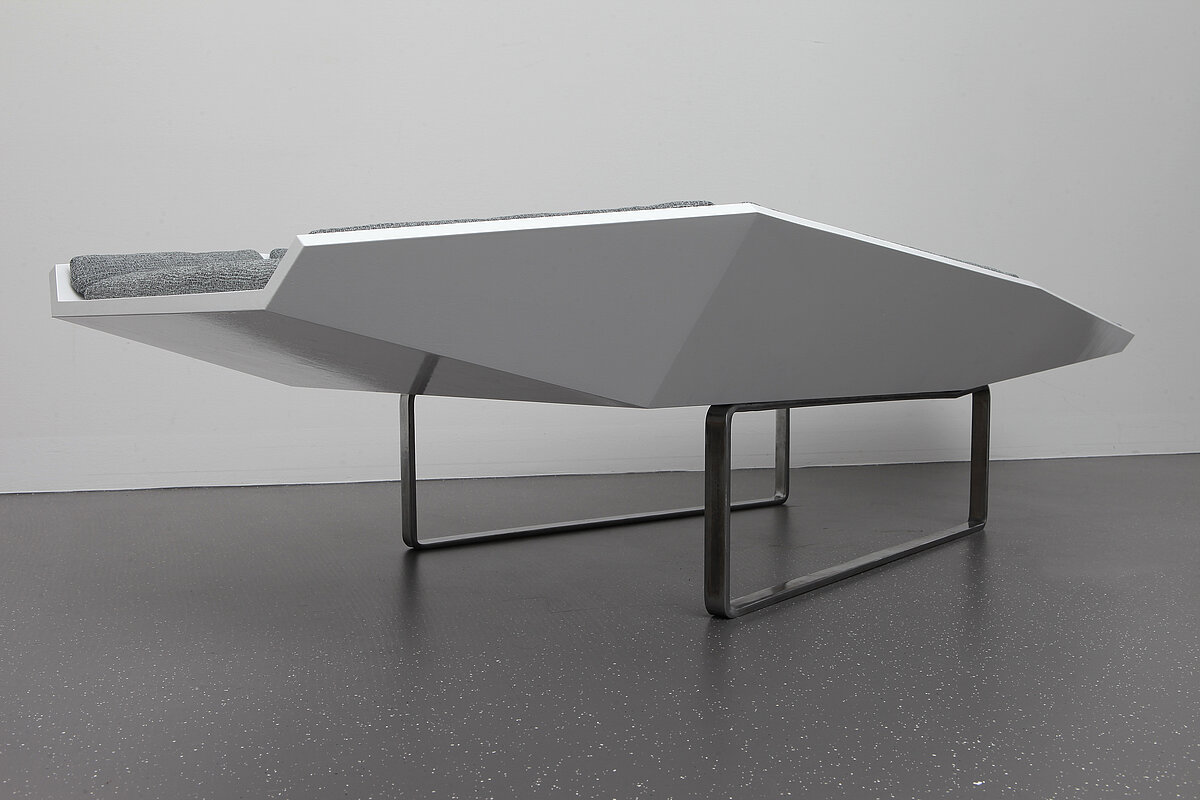 Das Ziel dieser Liege ist es, zu Ruhe zu finden, den Stress des Alltages zu vergessen und zu ruhen. Die Form des Sarges steht symbolisch für ein 'in Frieden ruhen' fernab von störenden Einflüssen. Der freie Raum zwischen den Polsterflächen soll die Form des Sarges aufbrechen.